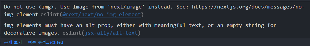 그러나 저번에 link처럼 img태그를 사용하지마라는 경고창이 뜬다.